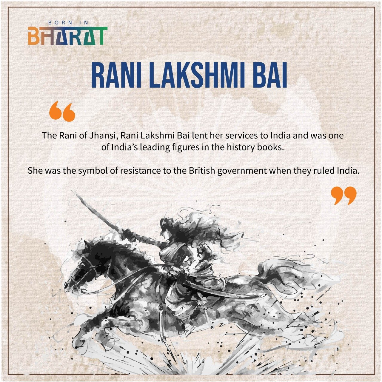 The Rani of Jhansi, Rani Lakshmi Bai lent her services to India and was one of India’s leading figures in the history books. She was the symbol of resistance to the British government when they ruled India.